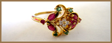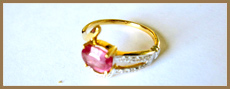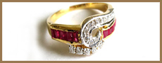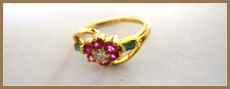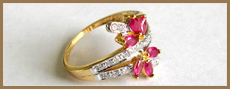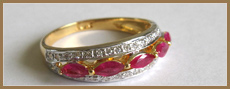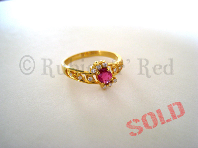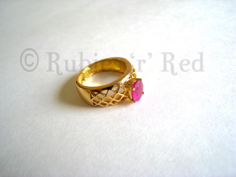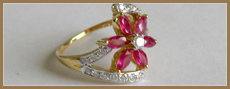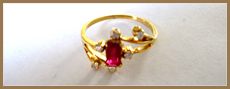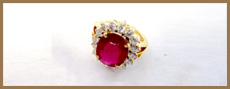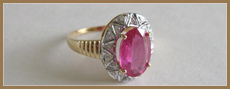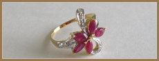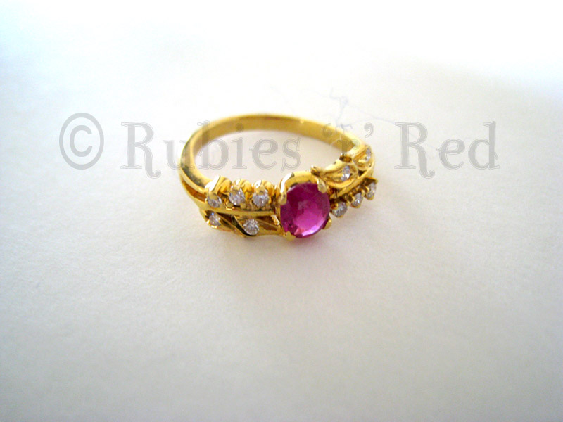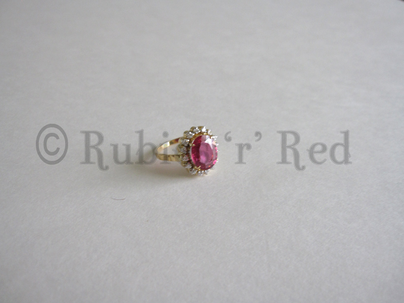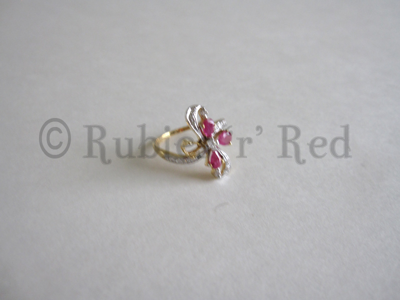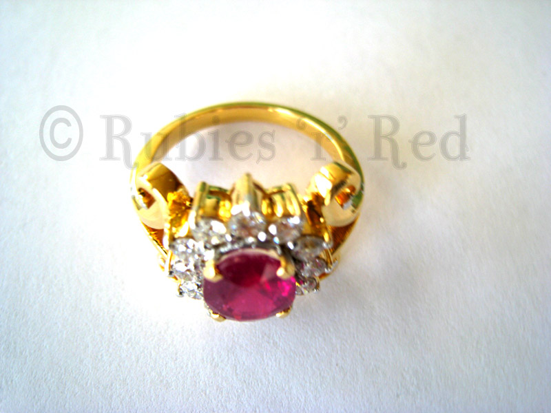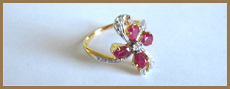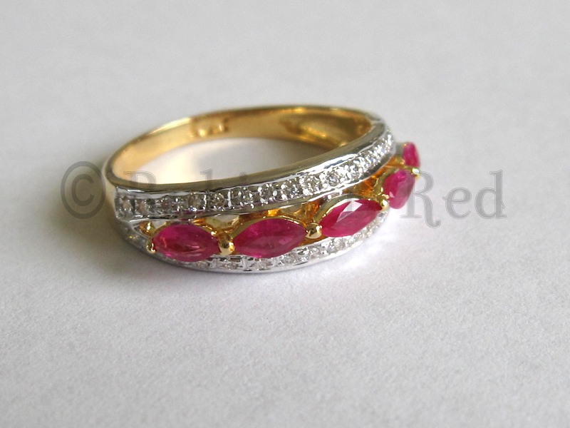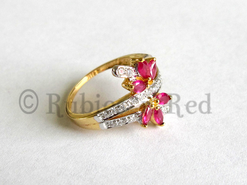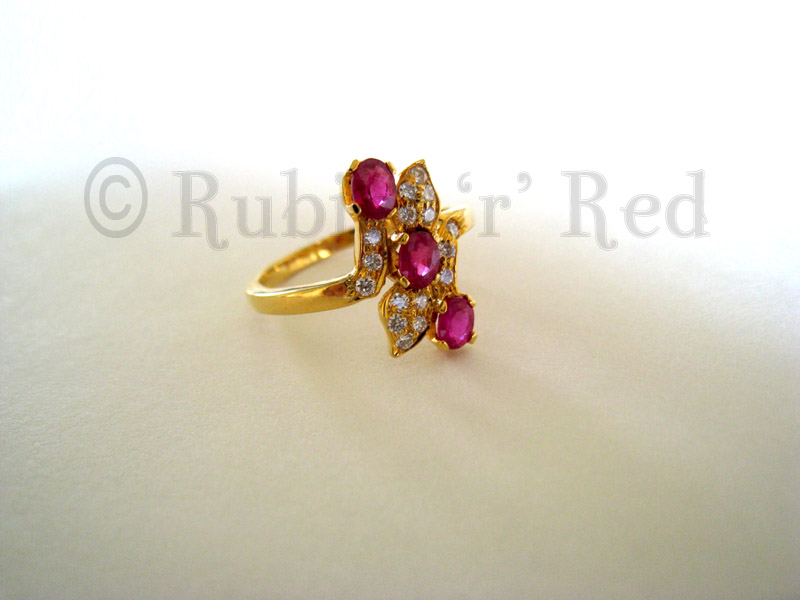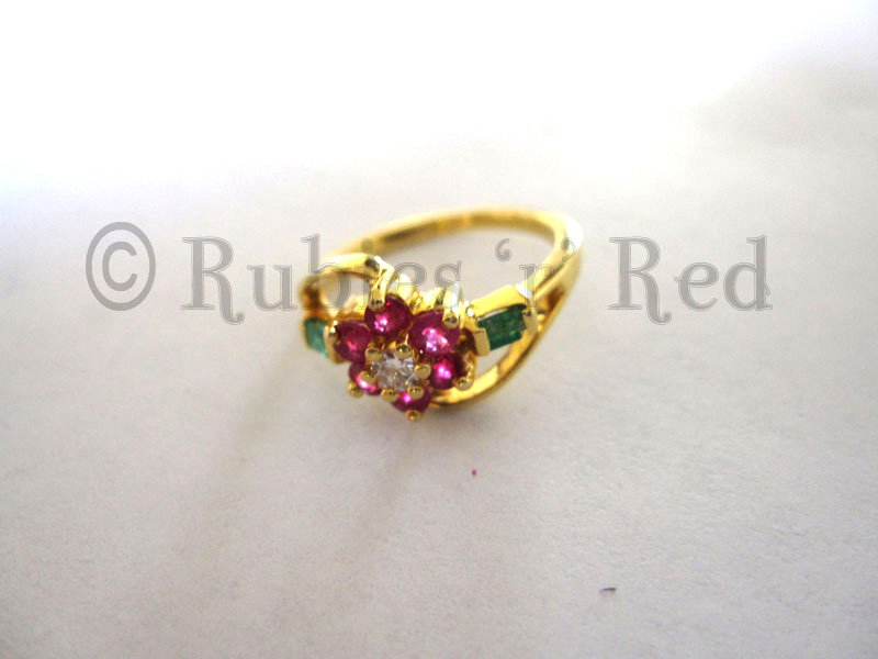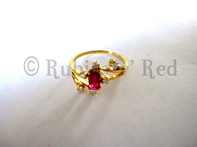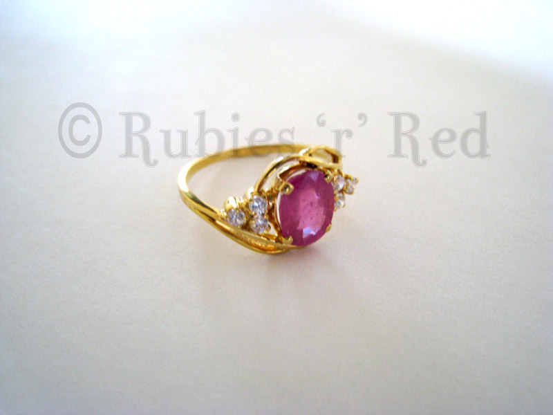 A Ruby is a pink to blood red gemstone, a variety of the mineral corundum (aluminium oxide). The common red color is caused mainly by the element chromium. Its name comes from ruber, Latin for red. It is considered one of the four precious stones, together with the sapphire, emerald and diamond.